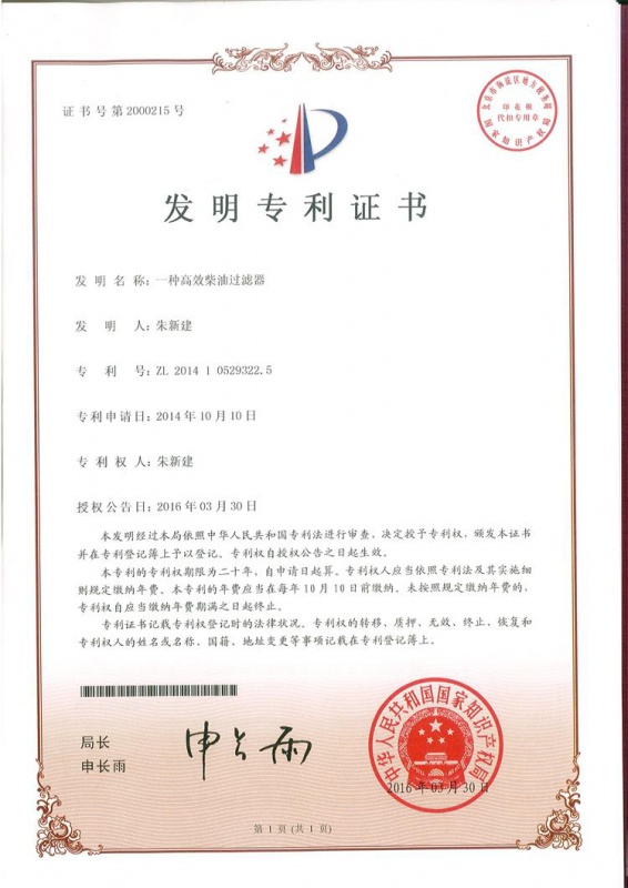 摘要: 本實(shí)用新型公開了一種有效柴油過濾器,包括筒形的殼體,殼體內(nèi)設(shè)置有濾芯壓盤、濾芯安裝盤和濾芯,若干組濾芯沿殼體軸線的周向均勻分布,濾芯的濾芯腔通過通孔與儲(chǔ)存腔連通,濾芯壓盤和濾芯安裝盤之間還設(shè)置有多組磁性支撐桿;進(jìn)料口位于過濾腔上端的殼體側(cè)壁上,出料口位于儲(chǔ)存腔下端的殼體側(cè)壁上,排空口位于上封頭的上表面,排污口位于殼體側(cè)壁,排凈口位于下封頭的下表面中心處;本實(shí)用新型能夠有效過濾柴油中的機(jī)械金屬雜質(zhì)、膠質(zhì)、瀝青質(zhì)等物質(zhì),最大限度地柴油的清潔,提高發(fā)動(dòng)機(jī)使用壽命;同時(shí)具有便于更換的優(yōu)點(diǎn)。