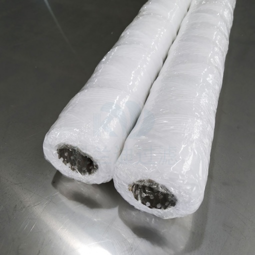 PP纖維線纏繞濾芯是利用自動(dòng)化機(jī)械設(shè)備設(shè)定好的纏繞次數(shù)和花紋數(shù)量,將PP聚丙烯紡織纖維線纏繞在不銹鋼多孔骨架上面制作而成,纏繞的過(guò)程中中間區(qū)域纏繞的精密濾芯外圍區(qū)域纏繞的疏松從而形成梯度式的過(guò)濾精度。此制作工藝提高過(guò)濾效率增加了濾芯納污能力使用得濾芯有更長(zhǎng)的使用壽命。