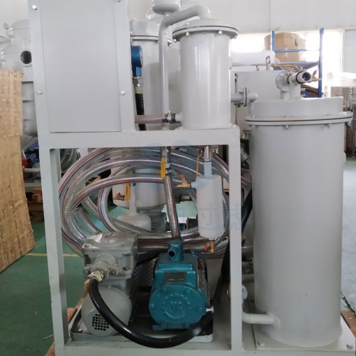 目前用于200MW機組的國產(chǎn)油凈化裝置主要是利用沉降和過濾原理,其基本結(jié)構(gòu)由沉積箱、過濾箱和貯油箱構(gòu)成。在沉積箱中設(shè)有多層分離網(wǎng),依靠油和水的重力差,油中的水在穿過分離網(wǎng)時凝聚成水滴,沉降在箱體下部,由自動抽水器排出箱體外。這些凈油設(shè)備設(shè)計容量較大,體積尺寸也較大,而且從使用情況看,普遍存在著除水效果差、油臟、易堵塞凈化裝置等現(xiàn)象。另外也有采用普通真空式凈化裝置,利用閃蒸原理除水并用網(wǎng)狀過濾器除雜質(zhì),這類裝置宜于脫除油中的微量水分,但對于漏水嚴重的機組,尤其是乳化的油液往往無能為力,也不宜于連續(xù)投入運行。若使用TY型汽輪機透平油專用濾油機,不但可以有效去除油中的空氣、水及雜質(zhì),而且能夠自動破乳化。從而實現(xiàn)對發(fā)電汽輪機機組的透平油凈化的目的。