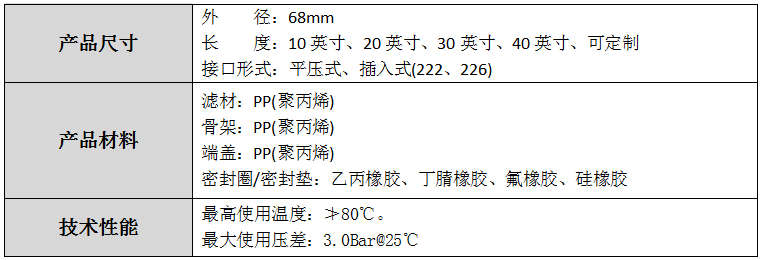 骨架和端蓋由聚丙烯(PP)制成,過濾芯采用整體熱熔焊工藝成型。